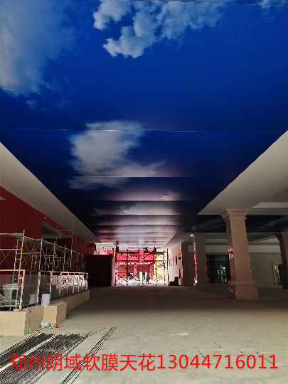 室內(nèi)大塊、大面積藍(lán)天白云軟膜天花吊頂,透光膜 UV噴印色彩度飽和度高。
